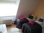 Die 3-Zimmerwohnung befindet sich im 2.Obergeschoss eines Dreifamilienhauses und ist cirka 65 m² groß. Die Wohnung ist modern eingerichtet, komplett ausgestattet, verfügt über ein Wohnzimmer (mit einer Schlafgelegenheiten), ein Schlafzimmer mit zwei Einzelbetten, einem zusätzlichem Raum Kinderzimmer (mit 2 Schlafgelegenheiten) eine Küche, ein Badezimmer (Badewanne) und ein WC.